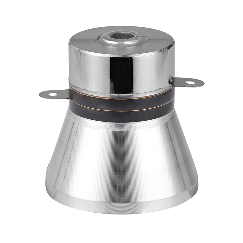 超聲波換能器(振子)是由壓電陶瓷的壓電效應實現(xiàn)電能轉(zhuǎn)換為機械能(超聲波振動),并通過聲阻抗匹配的前后輻射蓋塊進行放大的器件。超聲波清洗是通過超聲波換能器(振子)產(chǎn)生的超聲波振動,在水中發(fā)生空化效應對清洗件上的污物產(chǎn)生的機械起剝落作用, 同時能促進清洗液與污物發(fā)生化學反應, 達到清洗物件的目的。